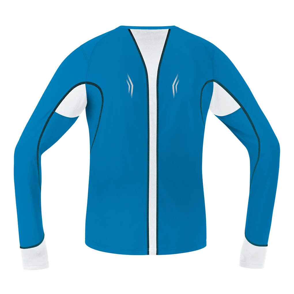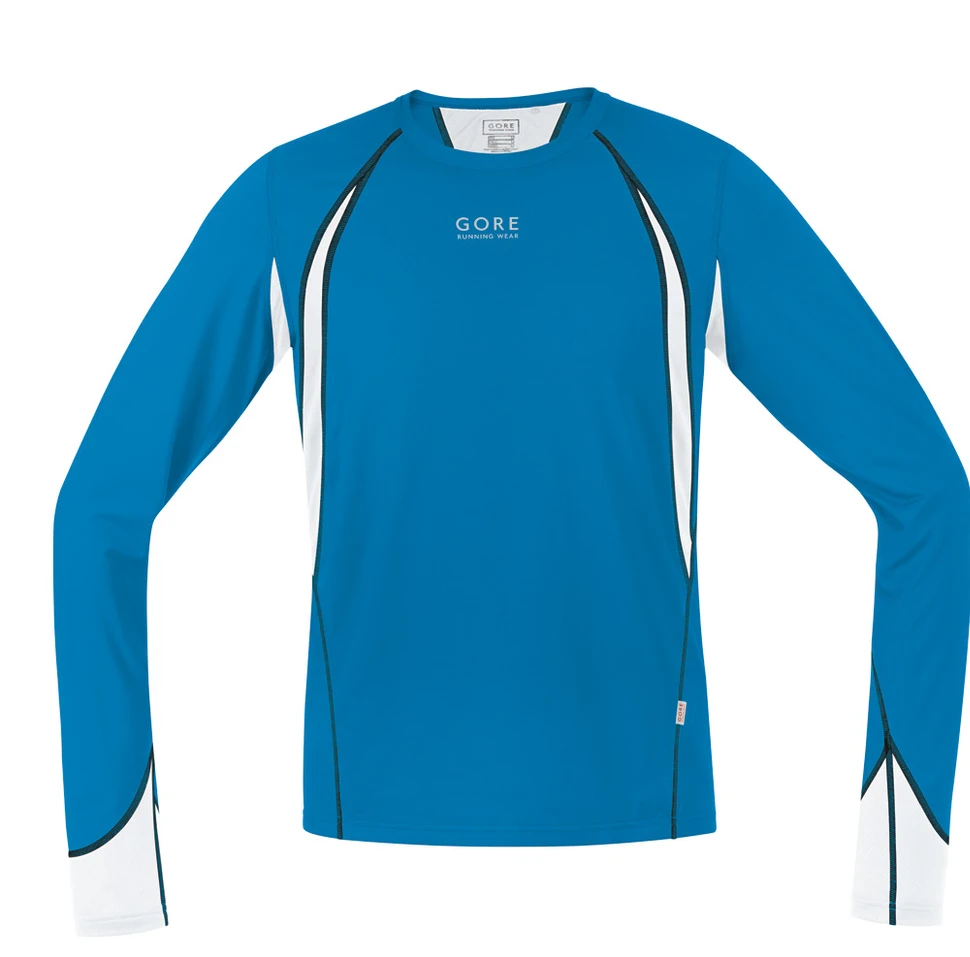 Le maillot à manches longues Air 4.0 de Gore Running Wear bleu et blanc, est constitué de mailles légÚres et aérées afin de propager une ventilation terriblement efficace.